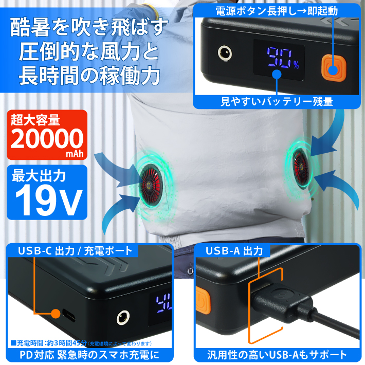 2025 最新 19V 超高出力 20000mAh 空調 作業 服 バッテリー単品 4段風量 作業服 空調ウエア 猛暑対策 熱中症対策 大容量バッテリー