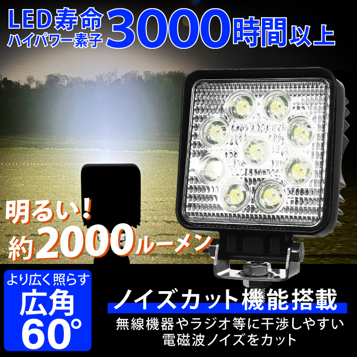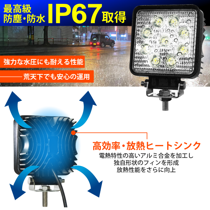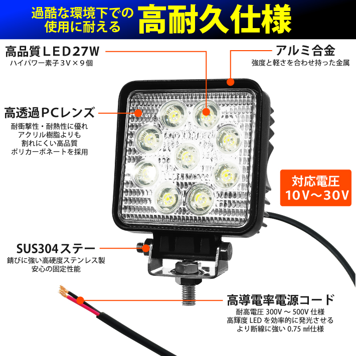 【2個】LED投光器 27W led 作業灯 12v 24v 広角 ledライト ワークライト led作業灯 前照灯 LED集魚灯 角型 バックランプ デッキライト 投光器 led 屋外 防水