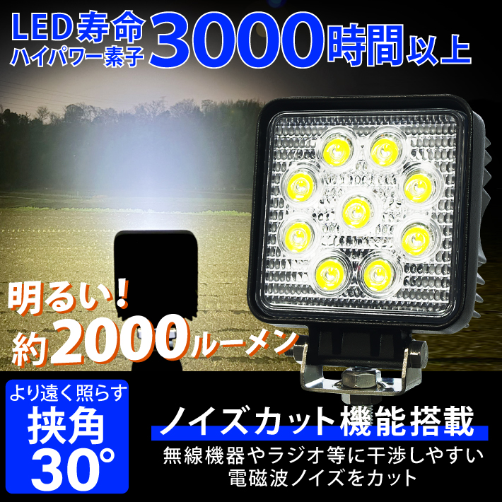 【20個】LED投光器 27W led 作業灯 12v 24v 狭角 ledライト ワークライト led作業灯 前照灯 LED集魚灯 角型 バックランプ デッキライト 投光器 led 屋外 防水