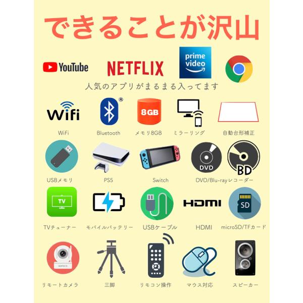 プロジェクター 小型 スマホ 家庭用 HDMI 変換 Android OS搭載 iPhone iPad ミラーリング PCから映像出力 動画アプリ取込 ホームシアター