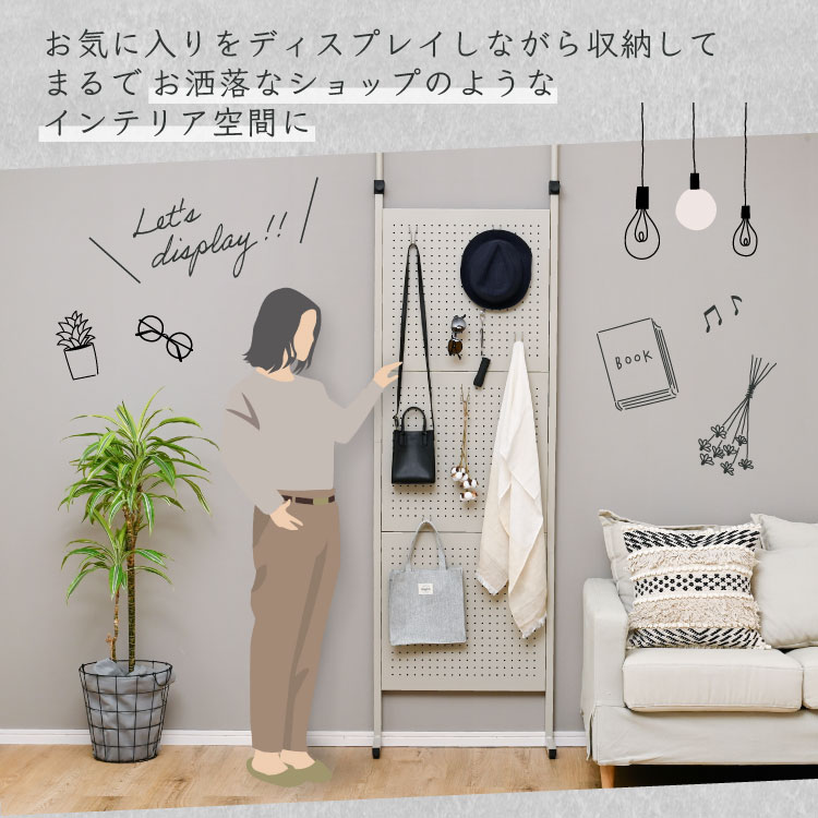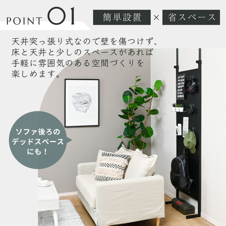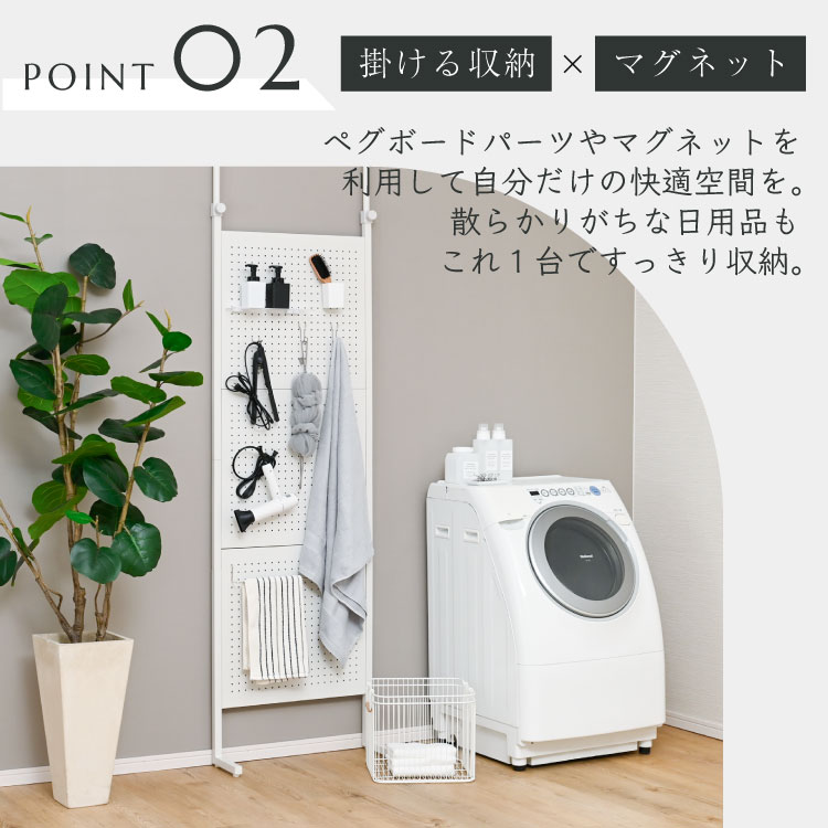 マグネットと有孔ボードアイテムが使える スチール製 突っ張りパーテーション 幅60 突っ張り棚 壁面収納 アイアン パンチングボード マグネットボード 間仕切り