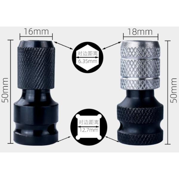 2個セット シルバーヘッド 差込角1/2(12.7mm)→六角軸1/4(6.35mm) 変換アダプター インパクトレンチ用
