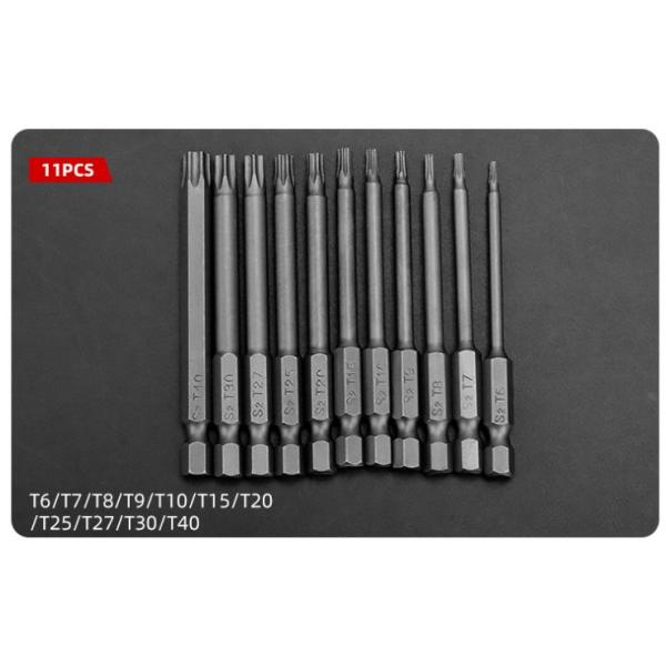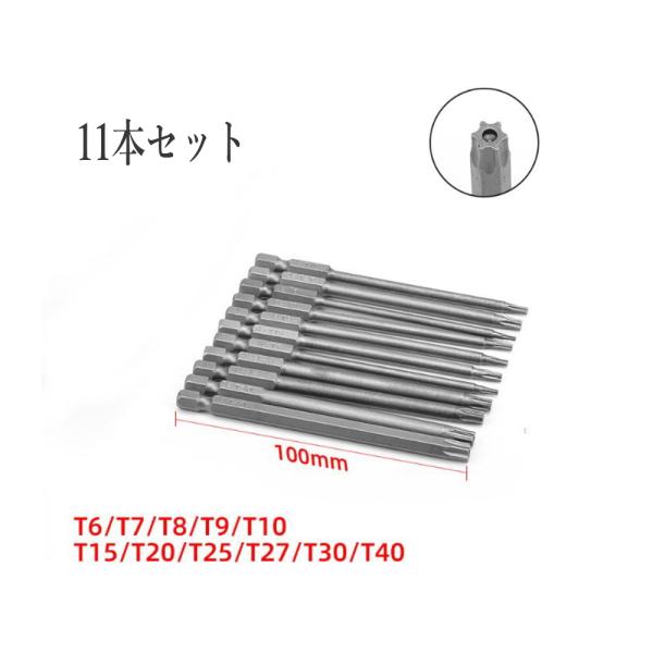 トルクスビットセット 11本組 T6〜T40 いじり止め 全長100MM 六角軸6.35MM S2鋼 電動ドリル・インパクト対応