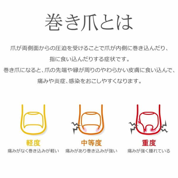 ●フックを爪先に引っかけるだけの簡単装着で爪甲の彎曲を改善します。