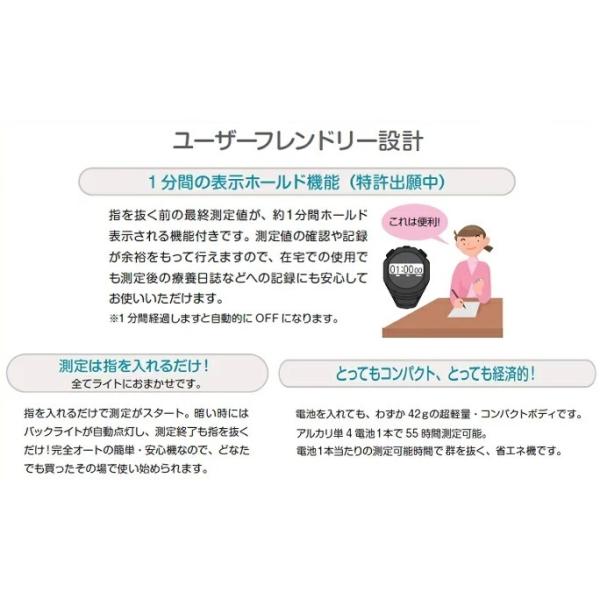 ■指を入れるだけで測定がスタート。暗い時には バックライトが自動点灯