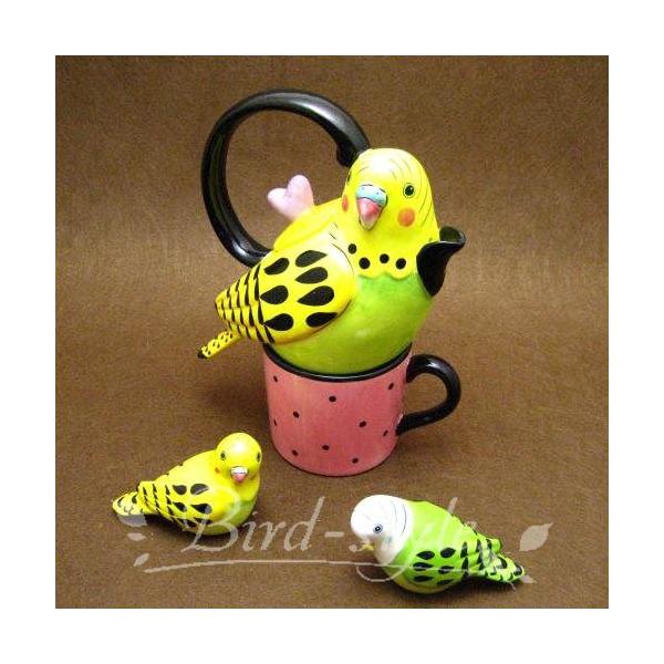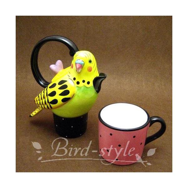 セキセイインコの一人用ティーポットとマグカップのセットです。インコ好きの方へのプレゼントに!