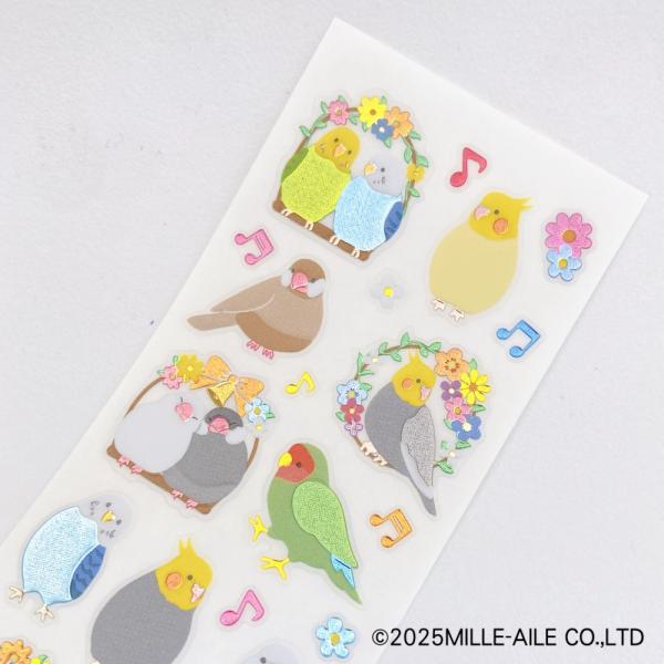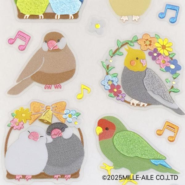 小鳥とお花が可愛らしいぷっくり質感の日本製シール。