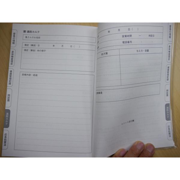発症(事故)時の様子、診察内容・経過、処方箋、注意事項などを記入する事ができます。