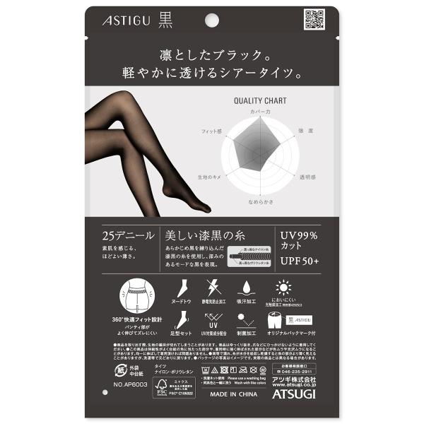 3足セット ASTIGU 黒 クールな漆黒 ストッキング 25デニール (S-M・M-L・L-LL) UV99%カットUPF50+ アツギ アスティーグ レディース シアータイツ D1PK