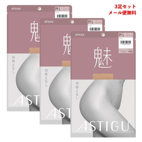 【3足セット】ASTIGU【魅】切替えなし オールスルー ストッキング (全6色)(S-M・M-L・L-LL) レディース アスティーグ アツギ シアータイツ メール便送料無料