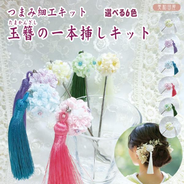 つまみ細工キット 玉簪 1本挿し 作り方説明書つき | ちりめん細工キット 中級者 大人髪飾り 美和田屋オリジナル 手芸