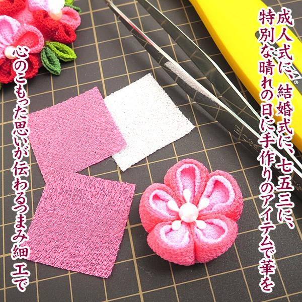 一越ちりめんはしぼ(表面のでこぼこ)が細かい縮緬でつまみ細工初心者の方にも上級者の方にも綺麗にお作りいただけます