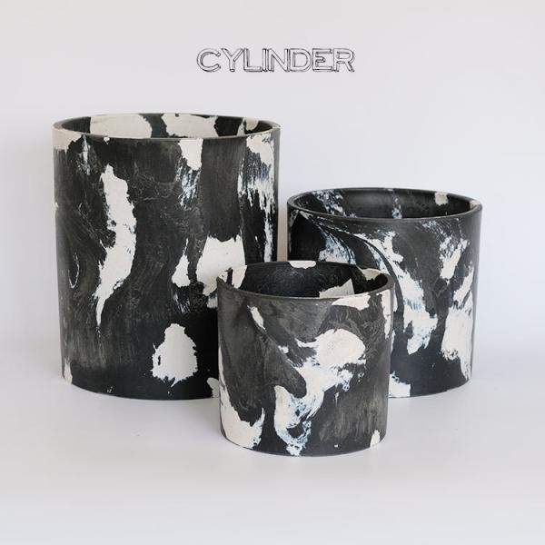 マーブルシリンダーポット16 黒白 サボテン 頑丈 おしゃれ 塊根植物 多肉 コーデックス 径16cm 高さ14cm プラスチック鉢