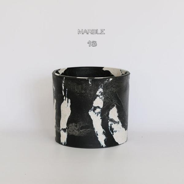 マーブルシリンダーポット16 黒白 サボテン 頑丈 おしゃれ 塊根植物 多肉 コーデックス 径16cm 高さ14cm プラスチック鉢