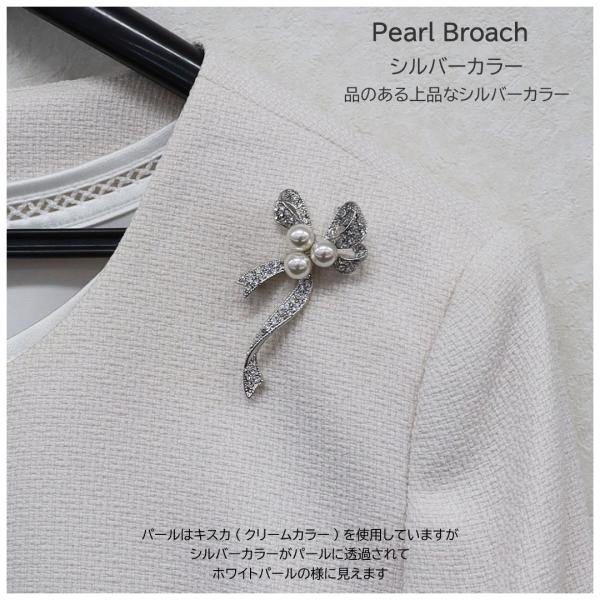 パールブローチ 真珠ブローチ 真珠 パール ピン ブローチ リボン ホワイト 白 シルバー ゴールド 結婚式 入学式 卒業式 フォーマル