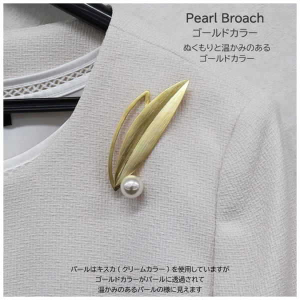 パールブローチ 真珠ブローチ 真珠 パール ピン ブローチ リーフ 葉 ホワイト 白 シルバー ゴールド 結婚式 入学式 卒業式 フォーマル