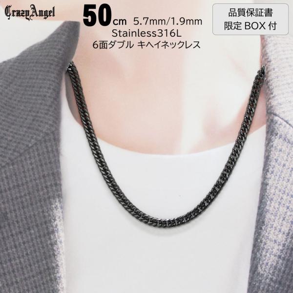 喜平ネックレス メンズ ネックレス 喜平 メンズネックレス 黒 ブラック ステンレス キヘイ ネックレス チェーン 50cm 幅5.7mm メンズアクセサリー