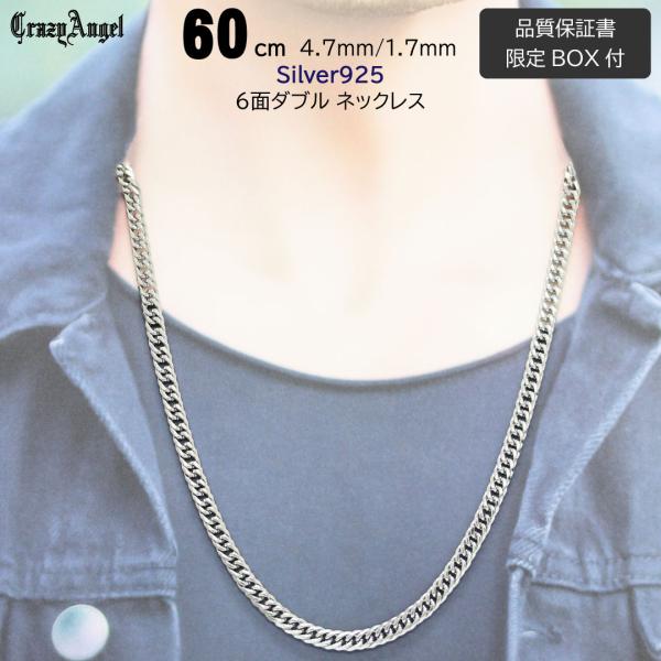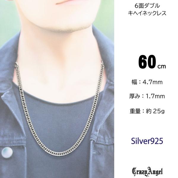 喜平ネックレス メンズ チェーン シルバー 6面 ダブル w 60cm キヘイネックレス キヘイチェーン 銀 変色防止 クレイジー エンジェル