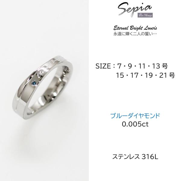 指輪 リング レディース ペア ステンレス ダイヤモンド ブルーダイヤ シルバー ピンキーリング 小指 薬指 金属アレルギー 対応 セピア