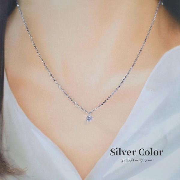 モアサナイト ネックレス ステンレス つけっぱなし ステンレスネックレス 金属アレルギー対応 錆びないネックレス レディース 一粒 ストーン 4mm