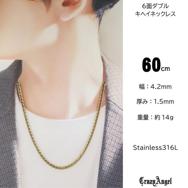 喜平ネックレス 金 ネックレス メンズ 喜平 メンズネックレス ゴールド ステンレス キヘイ 細 ネックレス チェーン 60cm 幅4.2mm メンズアクセサリー