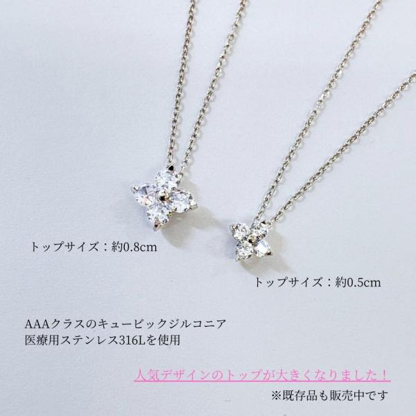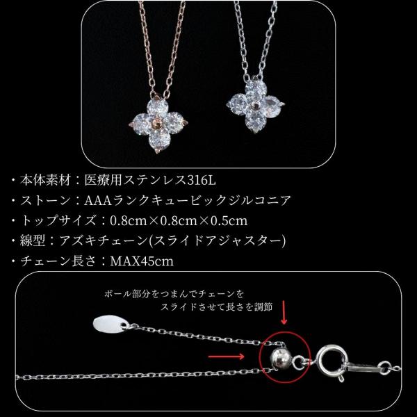 アレルギーを誘発しにくい、敏感肌に優しい最高位の医療用ステンレス316lに、AAAクラスのキュービックジルコニアをあしらったフラワーネックレス。