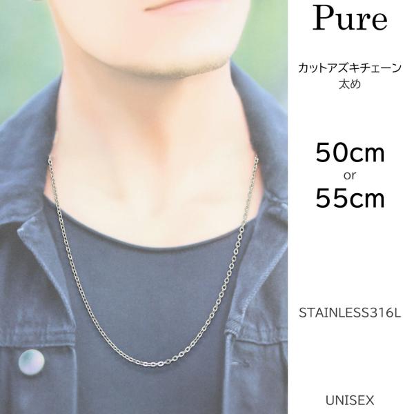 メンズネックレスチェーン レディースネックレスチェーン ステンレス アズキ チェーン 50cm 55cm シルバー メンズ レディース 金属アレルギー 対応