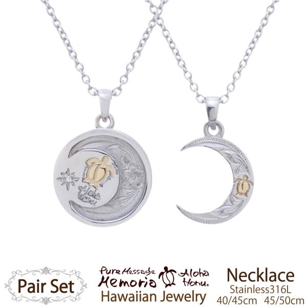 ハワイアンジュエリー ペアアクセサリー ペアネックレス ホヌ 月 ネックレス ペア 金属アレルギー ステンレスネックレス カップル お揃い