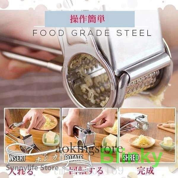 回転式チーズおろし器ステンレスチーズグレーターチーズ削り器ロータリーシュレッダーコンテナ付きキッチン用品