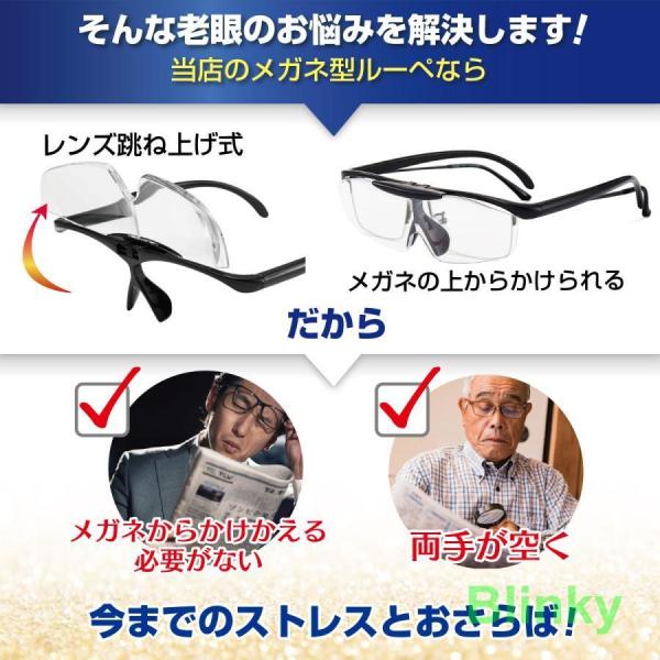 ルーペ 拡大鏡 眼鏡 めがね おしゃれ 跳ね上げ 携帯 1.6倍 5点セット