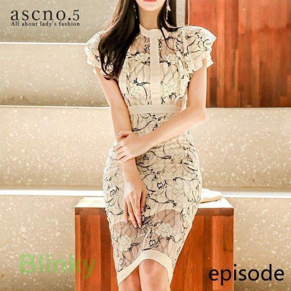 ドレス ワンピース ワンピ キャバ キャバドレス キャバクラ SMLXL 韓国 ハイネック フレアスリーブ 花柄 S/M/L/XL レース ベージュ