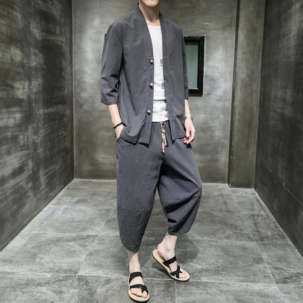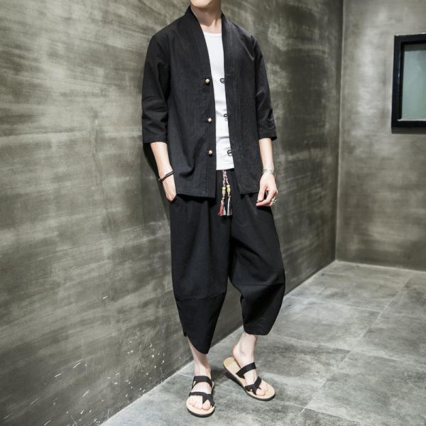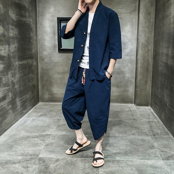 セットアップ 夏 上下セット メンズ 部屋着 半袖シャツ 七分パンツ ゆったり 通気性 カッコイイ 普段着 ストレッチ 大人 無地 シンプル コンフォート 夏服