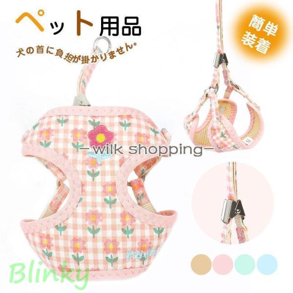 犬 ハーネス リード付き かわいい 花柄 ハーネスリードセット おしゃれ 子犬用ハーネス パピー用 脱げない ペットハーネス 小型犬 中型犬