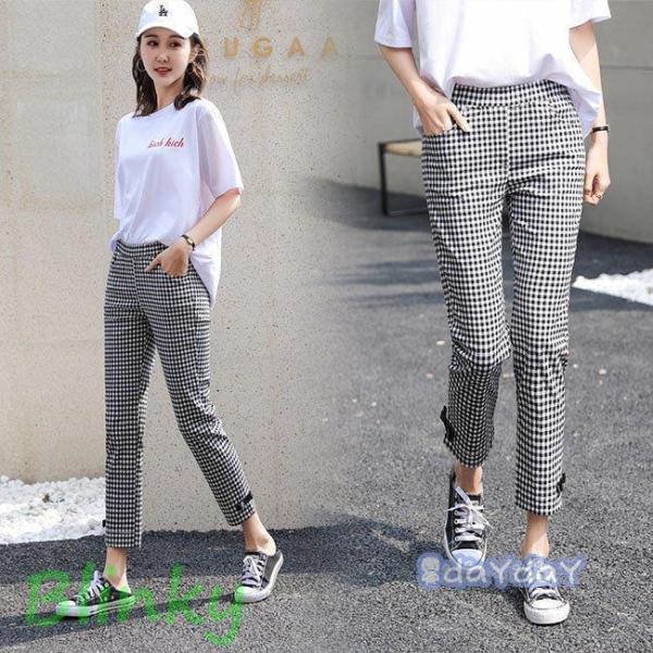カジュアルパンツ チェック柄 9分丈パンツ レディース パンツ スリムパンツ 薄手 スキニーパンツ ウエストゴム 九分丈 チェック柄パンツ お洒落