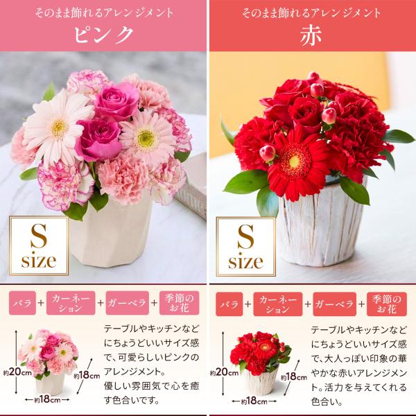 母の日 フラワーアレンジ ギフト 2026 カーネーション バラ ガーベラ Sサイズ 誕生日 プレゼント 義母 生花 お祝い 退職 卒業 送料無料