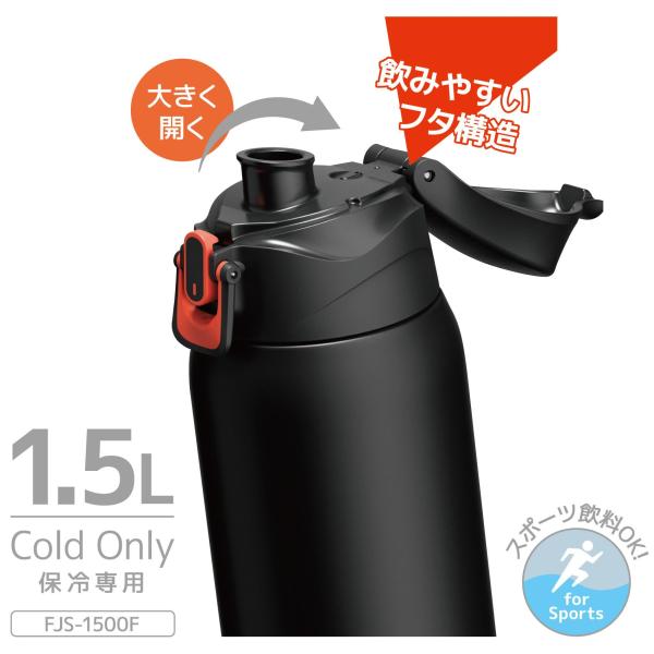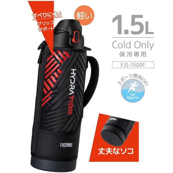 サーモス 水筒 真空断熱スポーツボトル 1.5L ブラックオレンジ 保冷専用 子供用 ポーチ付き 肩に優しいストラップ FJS-1500F BK