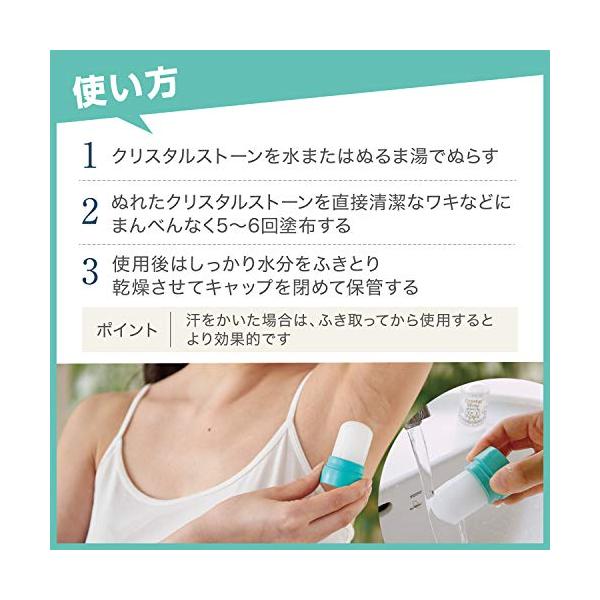 ・汗・ニオイに悩むユーザーから選ばれている3つの理由 「天然アルム石のチカラ」に着目して、汗・ニオイを元から防ぐ 天然アルム石:ミョウバン ワキに“直ヌリで有効成分がしっかり密着し、朝ぬって夜までつづいちゃう ぬった後は、すぐにサラサラ。 ベタつき・白残りしにくくすぐに洋服が着られる