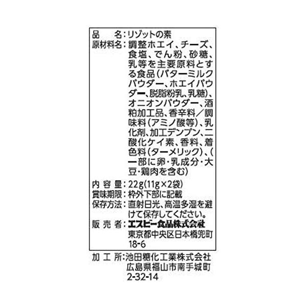 ・原材料:調整ホエイ、チーズ、食塩、でん粉、砂糖、乳等を主要原料とする食品(バターミルクパウダー、ホエイパウダー、脱脂粉乳、乳糖)、オニオンパウダー、酒粕加工品、香辛料/調味料(アミノ酸等)、乳化剤、加工デンプン、二酸化ケイ素、香料、着色料(ターメリック)、(一部に卵・乳成分・大豆・鶏肉を含む)