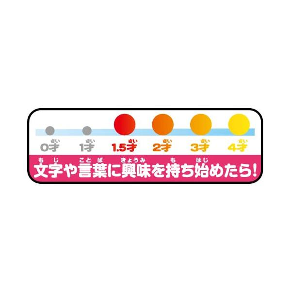 ・「あいうえお」のお勉強とうた入りのメロディ以外に、仲間たちのおしゃべりや効果音で遊べます。