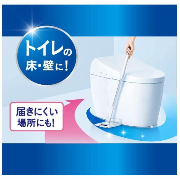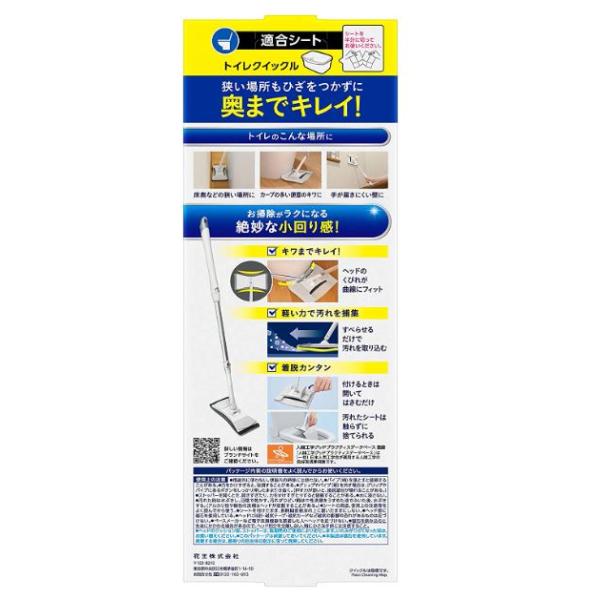 ・商品特長 小回りがきく“コンパクト設計だから、トイレの床の奥まで、ひざをつかずにラクに拭けるミシン目にそって半分に切った「トイレクイックル」のシートを装着