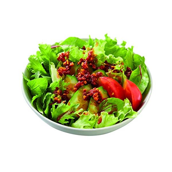 ラー油・フライドオニオン・ローストアーモンド・辣醤の組み合わせによる絶妙な美味しさはそのままに、「ローストアーモンド」のサイズを大きくすることで食感が更にアップしました。 にんにく不使用なので、にんにくの臭いも気にすることなく、あらゆるシーンでお楽しみいただけます。