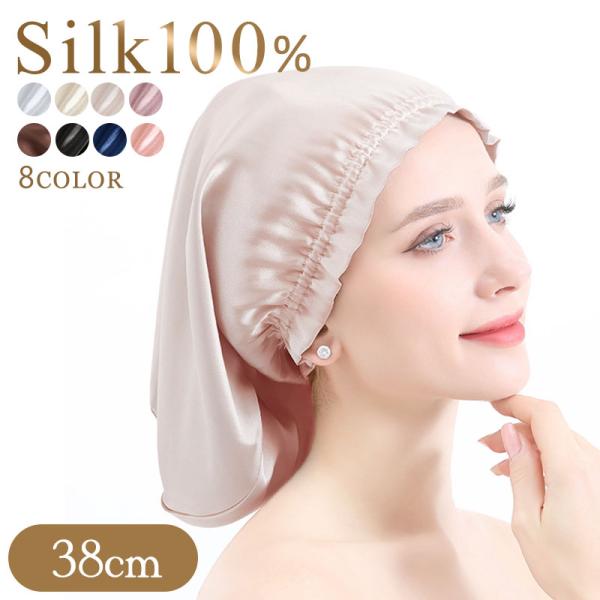 11日限定 10%OFFクーポン シルクナイトキャップ 38cm ミディアム 天然 シルク100% シルクキャップ ヘアキャップ シルク ナイトキャ