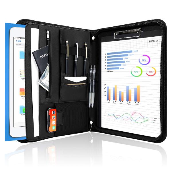 ProCase 多機能バインダー [ジッパー付き] フォルダー クリップファイルボード a4 ノートカバー 書類ホルダー タブレットスリーブ付き スマ