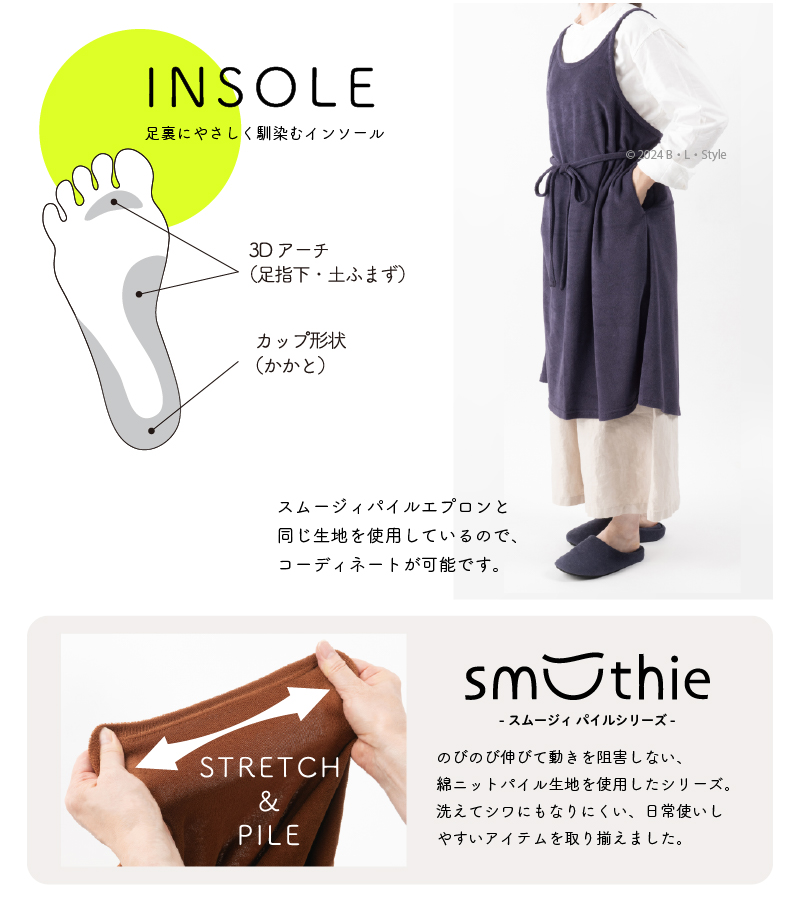 スリッパ ルームシューズ 洗える おしゃれ 室内スリッパ 室内履き ルームスリッパ S/約21-22.5cm スムージィパイルスリッパ B.B.Collection センコー