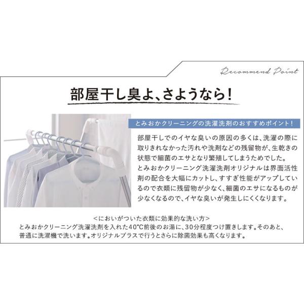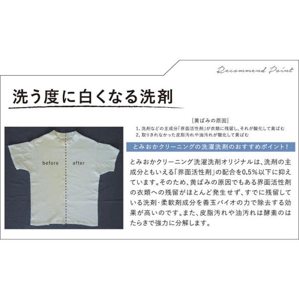 洗うたびに元々衣類に付着していた洗剤などの残留物が除去され、繊維本来の柔らかさを引き出します(柔軟剤を使用しなくても柔らかく仕上がります。)