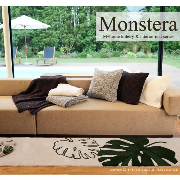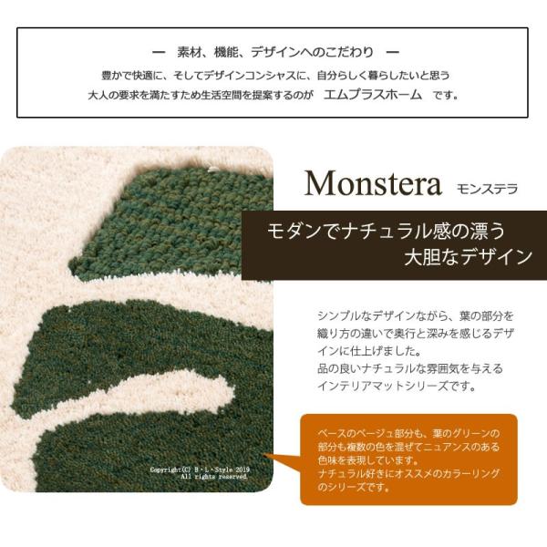 キッチンマット 180cm 洗える おしゃれ 日本製 台所マット 滑り止め 抗菌 吸水 幅広 インテリアマット M+home モンステラ 約55×180cm ベージュ センコー