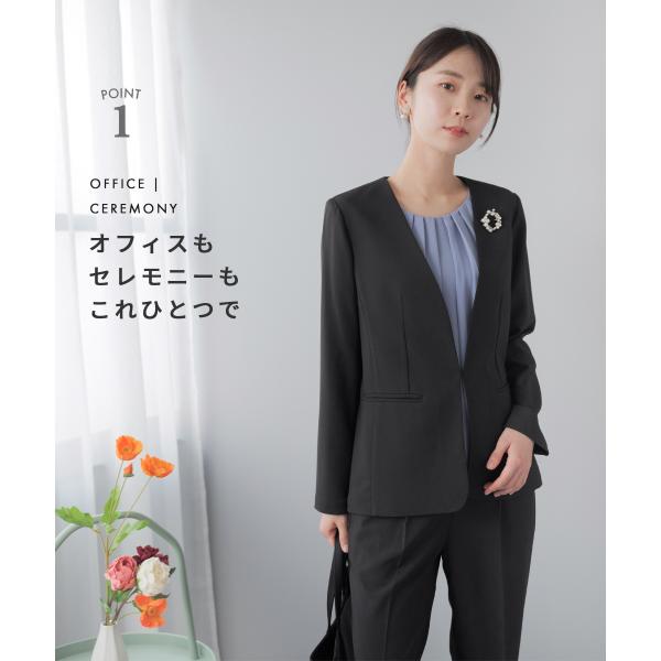 キーワード:スーツ レディース パンツスーツ ビジネス セレモニースーツ 洗える セットアップ ストレッチ ノーカラー 卒業式 母 服装 入学式 ママスーツ 30代 40代 50代 レディーススーツ ビジネススーツ
