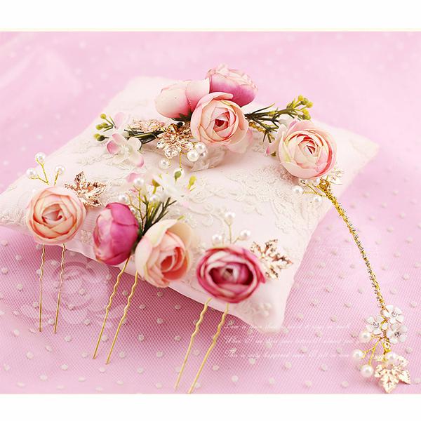 オールドローズ バラ 髪飾り ヘッドドレス ウェディング 結婚式 ブライダル ラプンツェル ティアラ かんざし ヘアアクセサリー ヘアバンド 髪留め