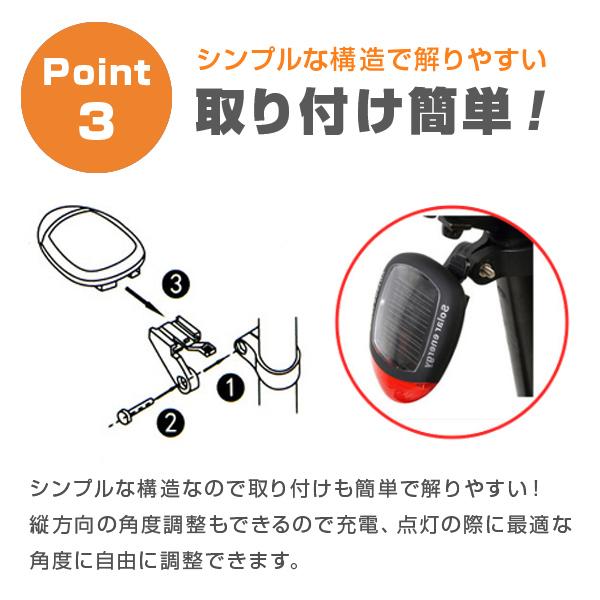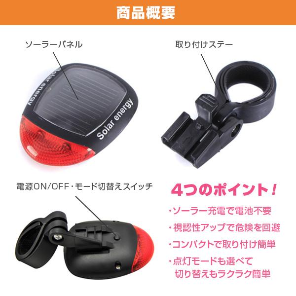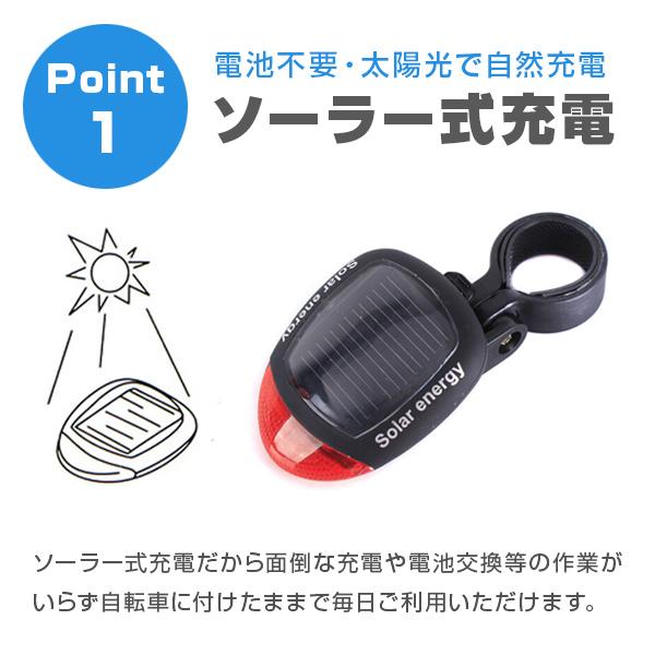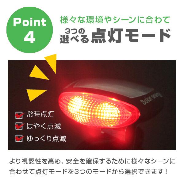 自転車用 テールライト テールランプ ソーラー 充電式 ライト 明るい LED リアライト サイクル フラッシュ 夜 照明
