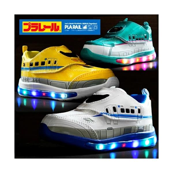 光る プラレール 新幹線 フラッシュ スニーカー 光る靴 点滅 男の子 男児 ボーイズ キッズ シューズ 靴